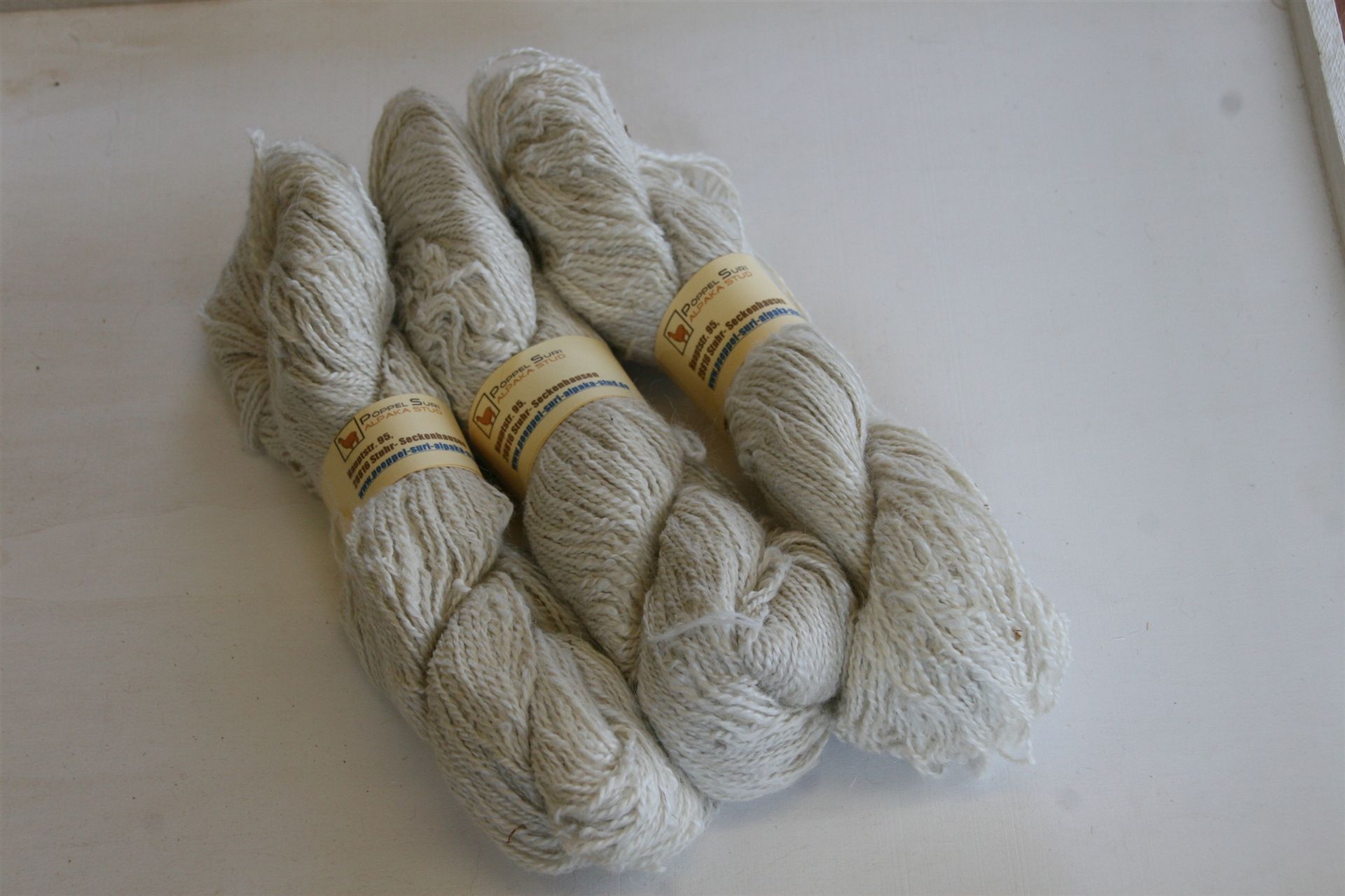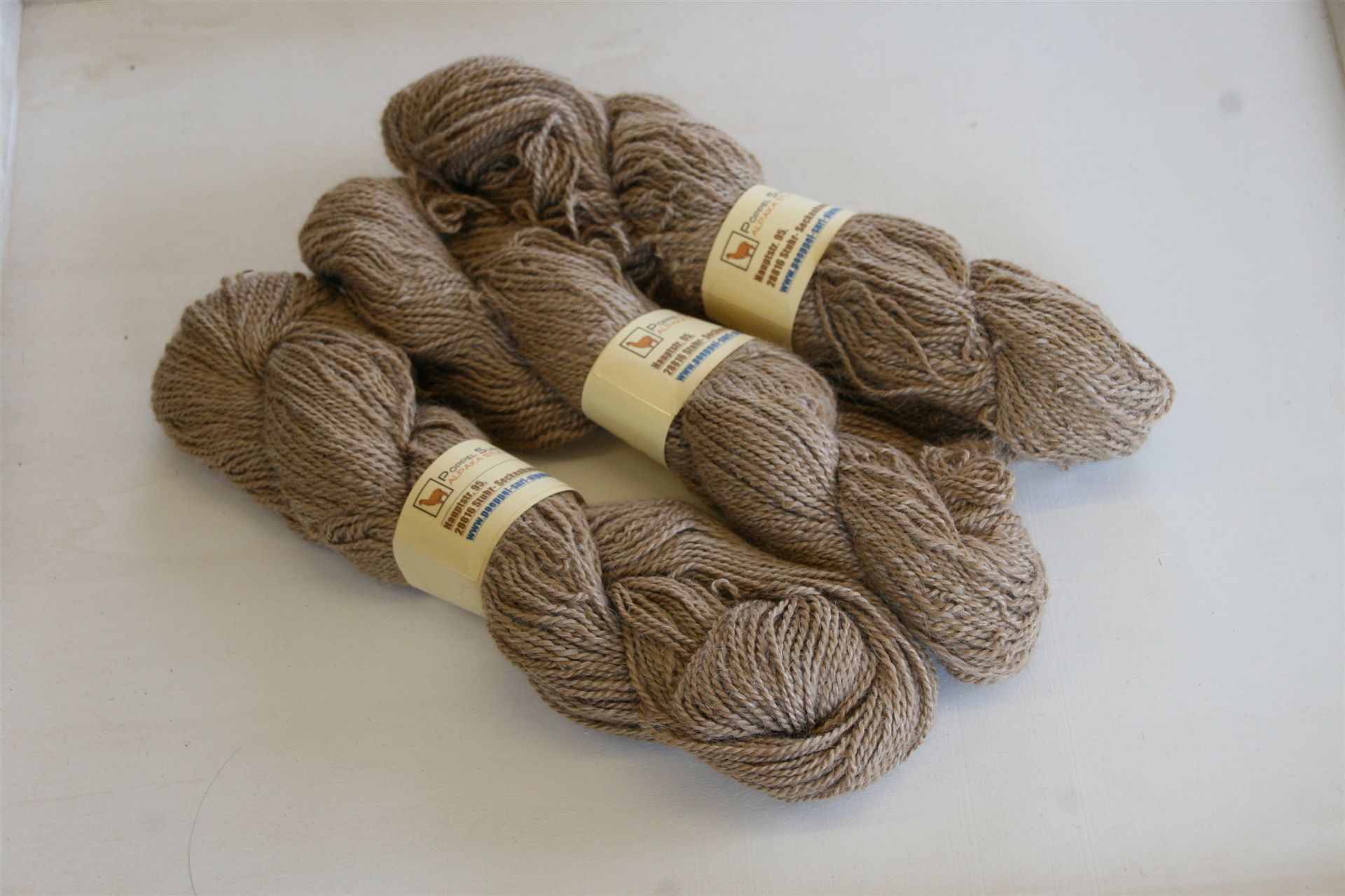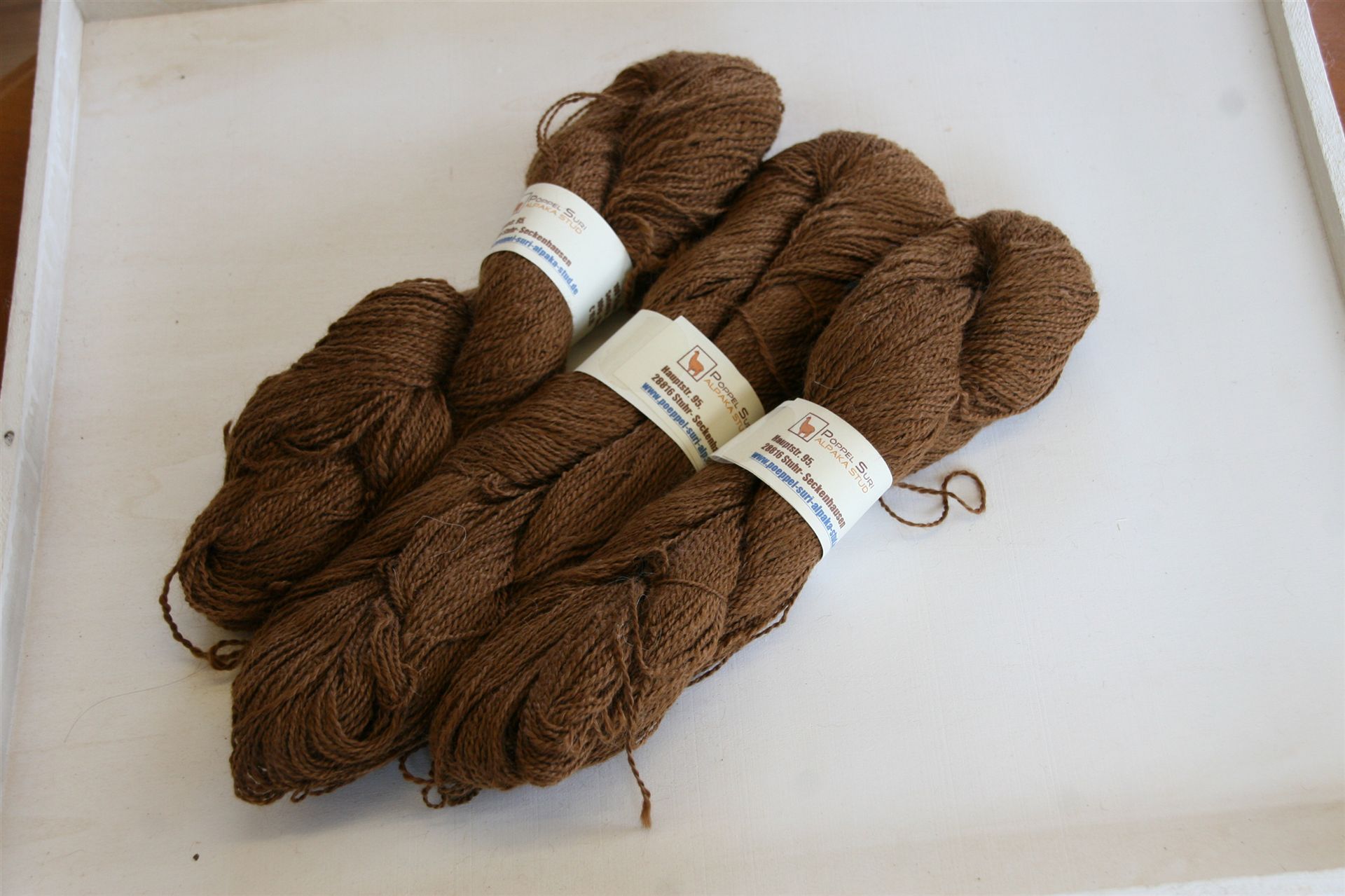 Die weitere Verarbeitung findet in einer kleinen Spinnerei statt. Dort wird die Faser schonend gewaschen, kardiert und versponnen. Die Spinnerei ist in der Lage selbst kleinste Margen ab 500 g separat zu verarbeiten. Das hat den Vorteil, dass im Extremfall die Faser/ Farbe von einzelnen Tieren verarbeitet werden kann. Bei passender Qualität und Farbe nehmen wir aber durchaus mehrere Fliese von verschiedenen Tieren zusammen. Das Endprodukt ist dann ein zweifädiges Garn mit schönem natürlichem Glanz.