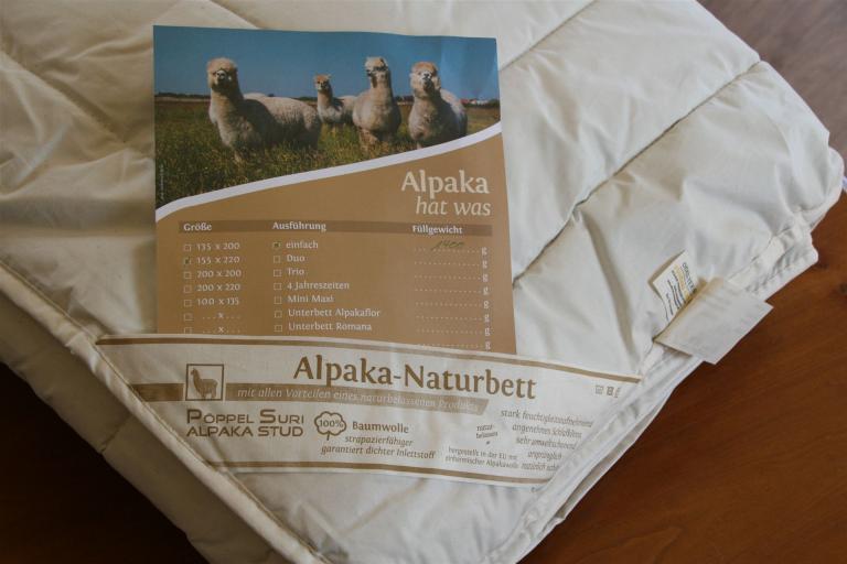 Unsere Alpaka Steppdecken sind mit 100 % Alpakafaser gefüllt. Zum Teil ist die Faser von unseren Suris beigemischt, was besonders guten Temperaturausgleich bei heißen Nächten bewirkt.