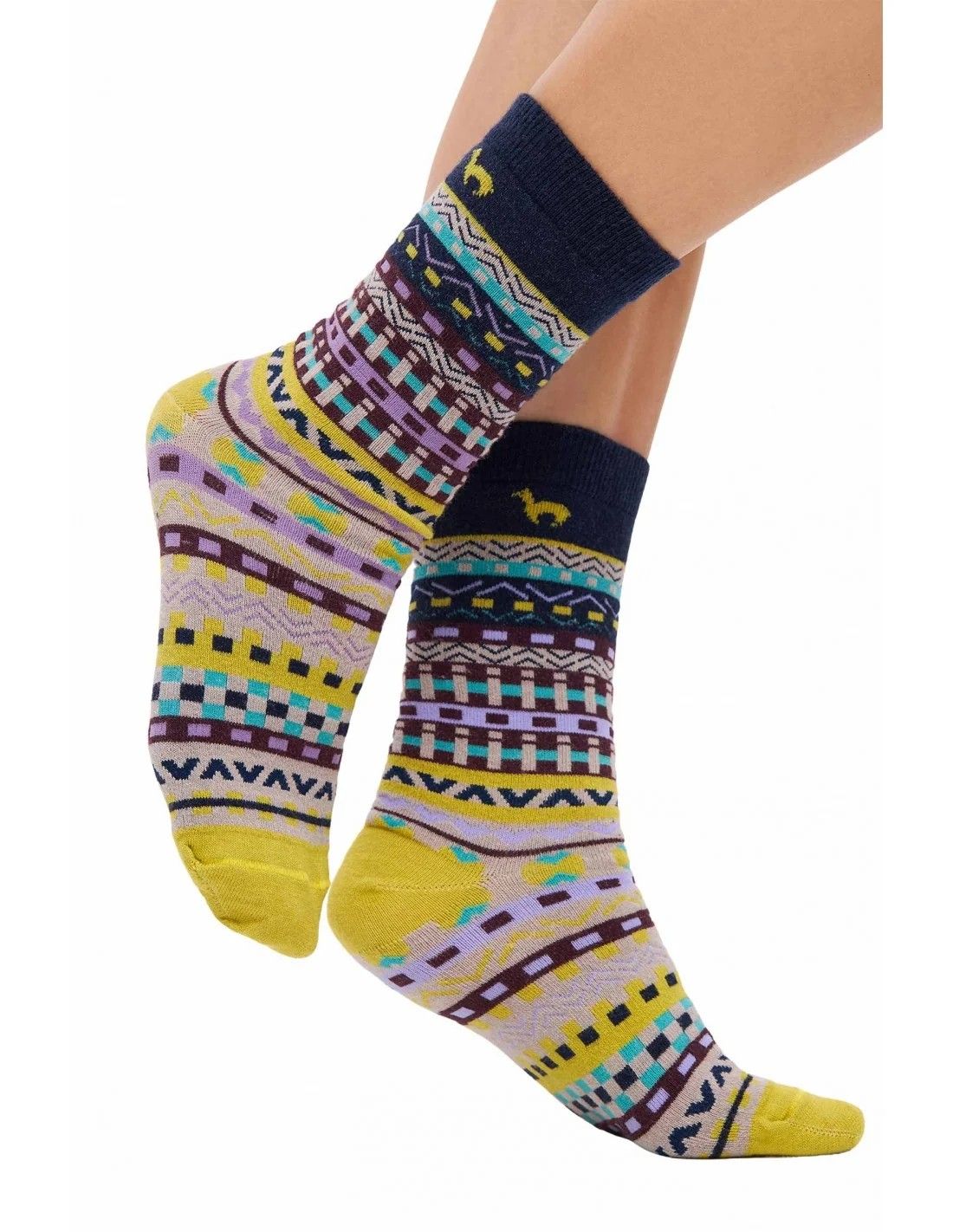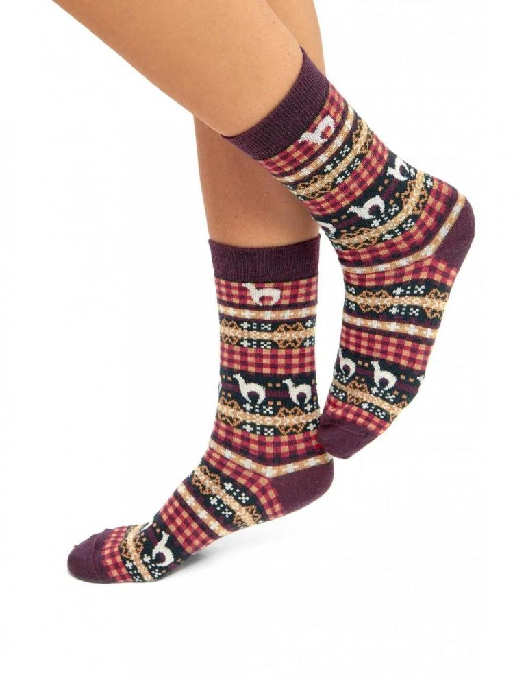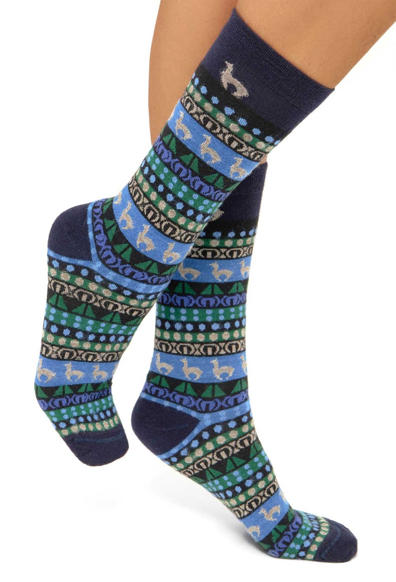 Die Alpaka-Socken sind ein farbenfrohes Statement für jeden Tag. Hergestellt aus der feinsten Alpakafaser, halten diese Socken Ihre Füsse warm und gemütlich, während das lebhafte Patchwork-Design aus den traditionellen Farben der Anden jeden Schritt zum Vergnügen macht.