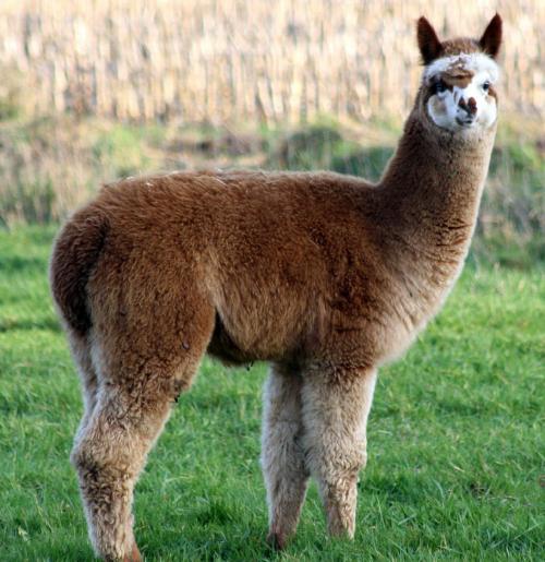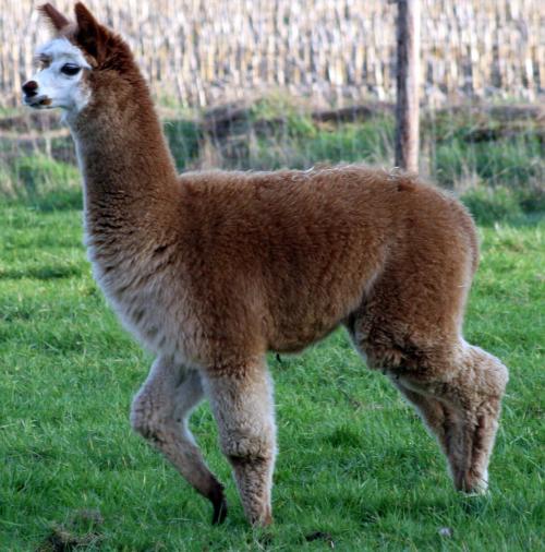 Beschreibung: Butomus ist ein kräftiger Huacaya Junghengst aus zwei A Klasse Suri Eltern. Seine Faser hat einen schönen Crimp und natürlich bringt er den Glanz der Suris mit. Der Körperbau ist korrekt gebaut.