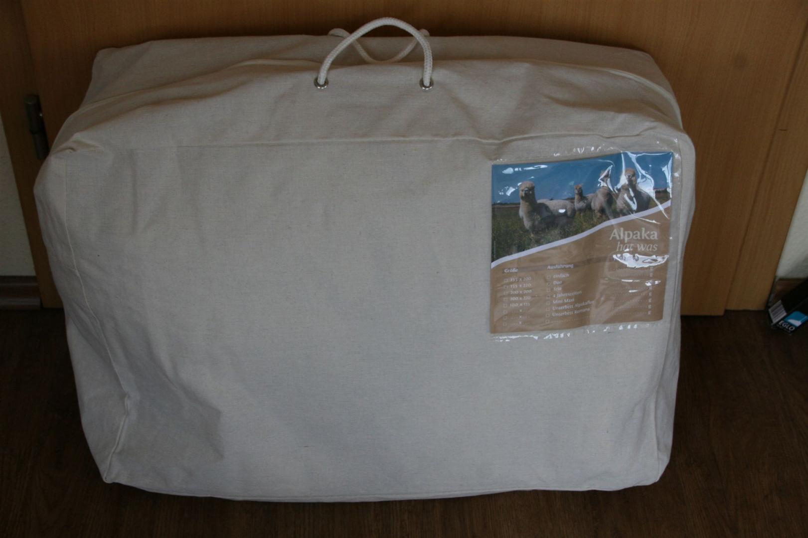 Sehr schöne leichte Bettdecke für den Sommer. Größe 155X220 cm, Füllung mit 1400 g reiner Alpakafaser.